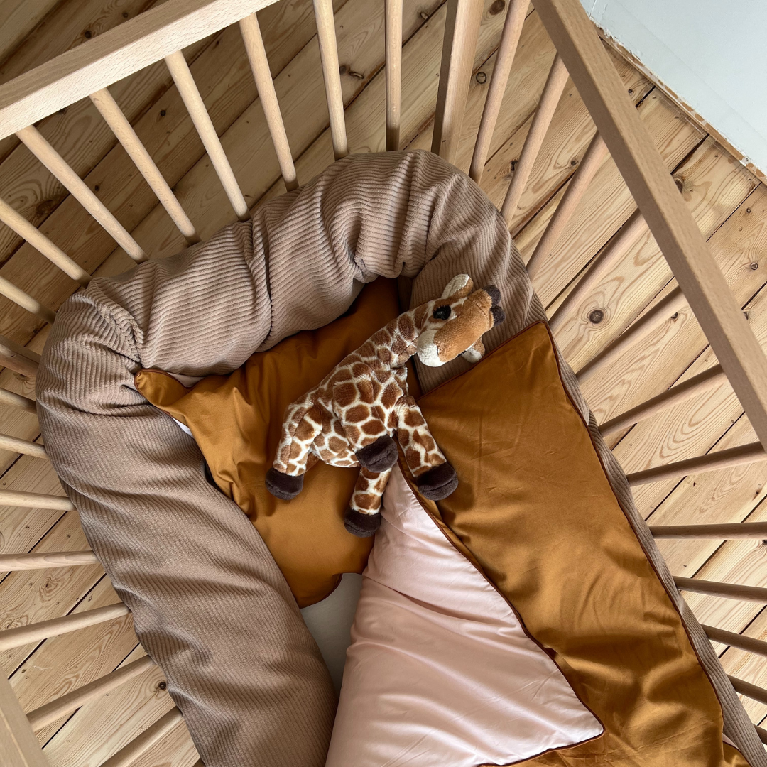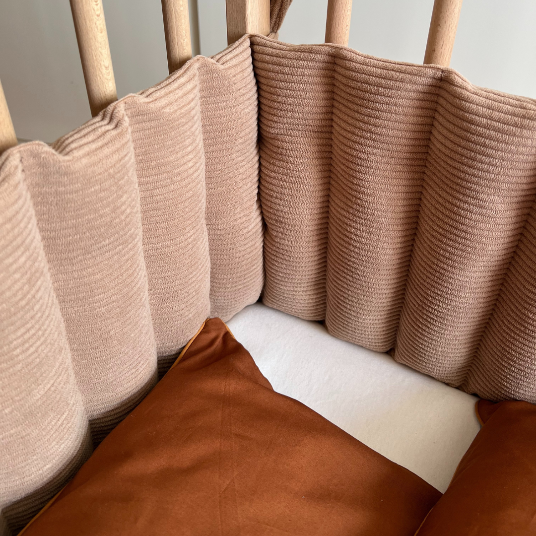 Sengeranden i fløjl er en opgradering af det allerede meget populære produkt, og med fløjlsudgaven skaber du den ultimative bløde og luksuriøse ramme for din babys søvn.